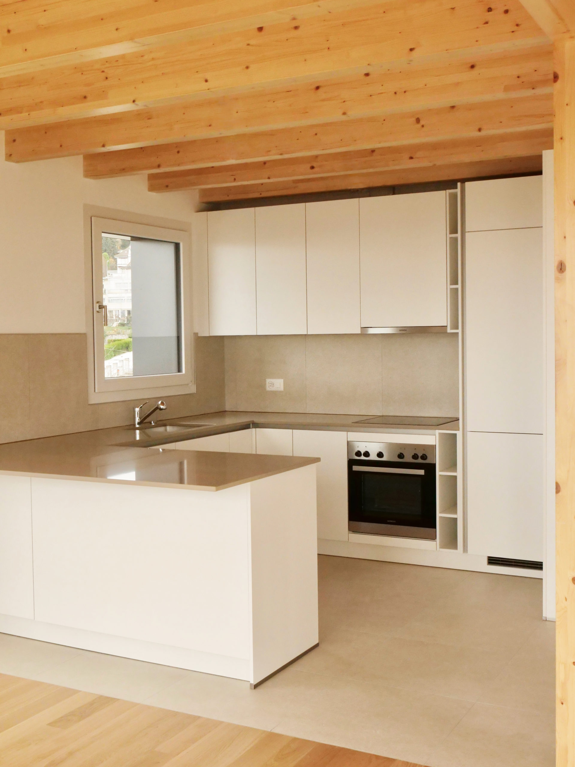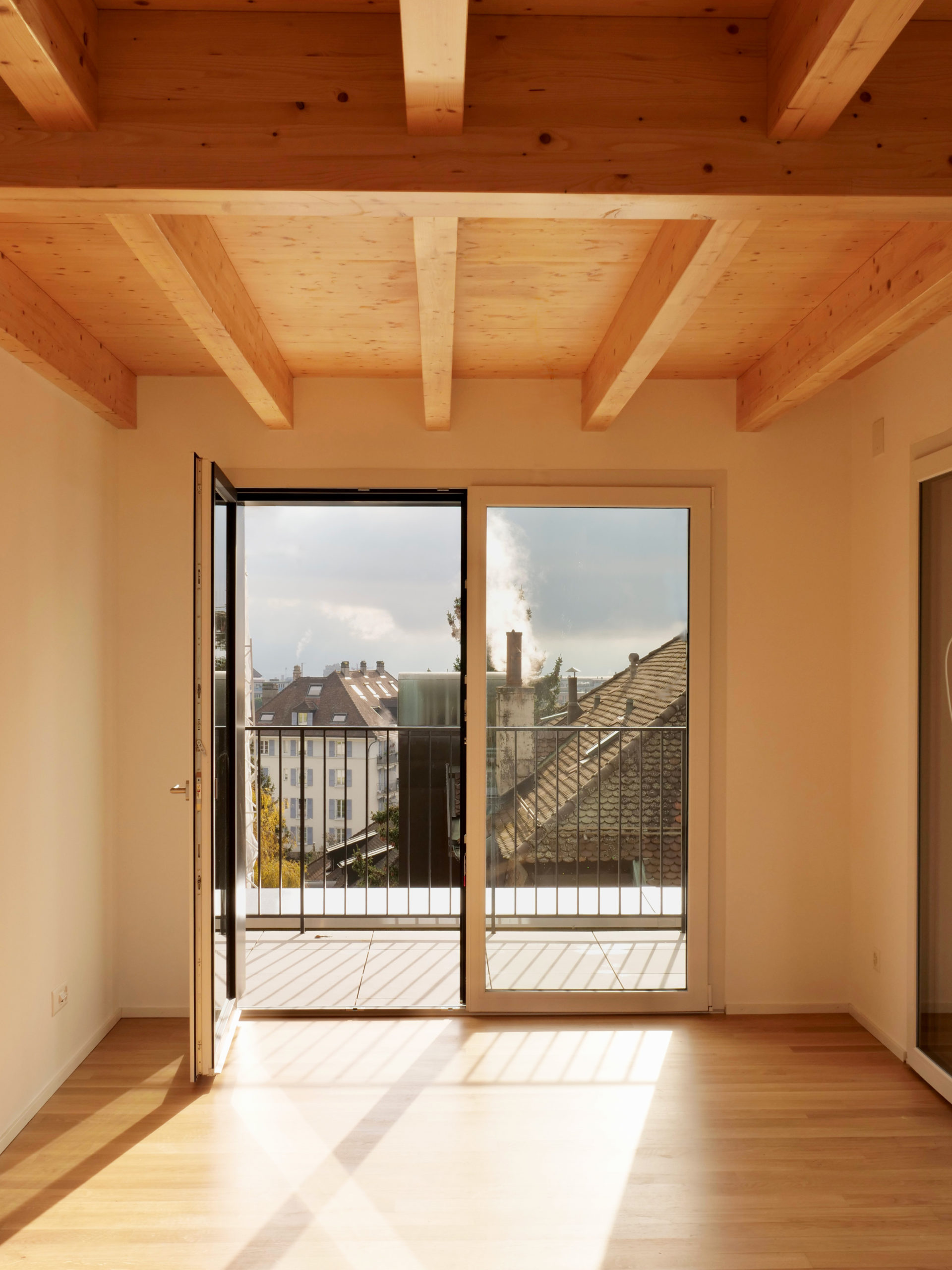 L’intervention consiste à respecter les éléments typiques du bâtiment, dont notamment la relation entre la façade, l’avant-toit et le joint négatif. En plus de l’isolation périphérique en façade, un travail d’intégration de la surélévation a permis d’ajouter un niveau supplémentaire en attique. Aussi, une intervention sur la mise aux normes des espaces communs est nécessaire, sans pour autant déloger les locataires. Le projet est en cours de construction et vise une labellisation Minergie.