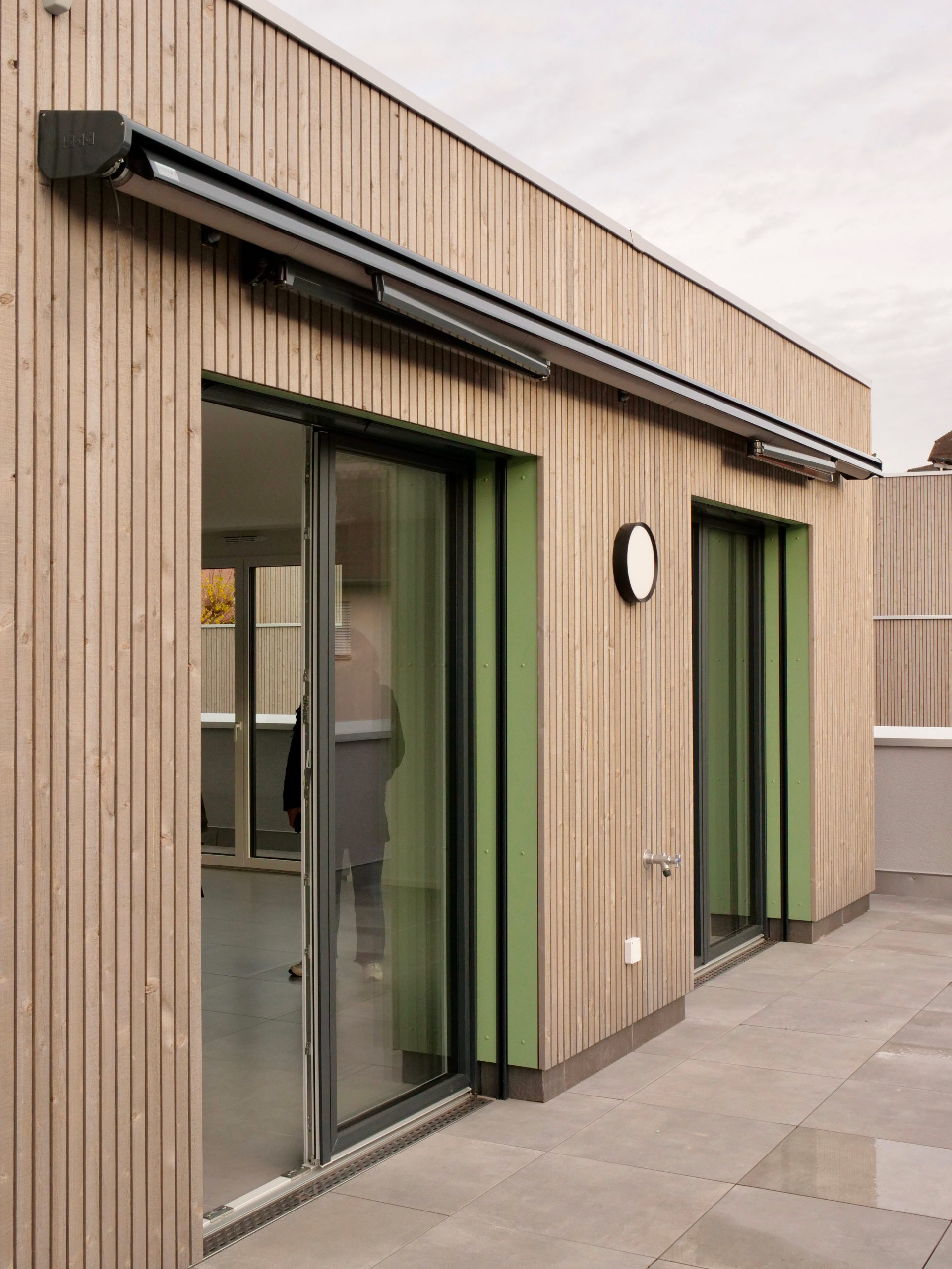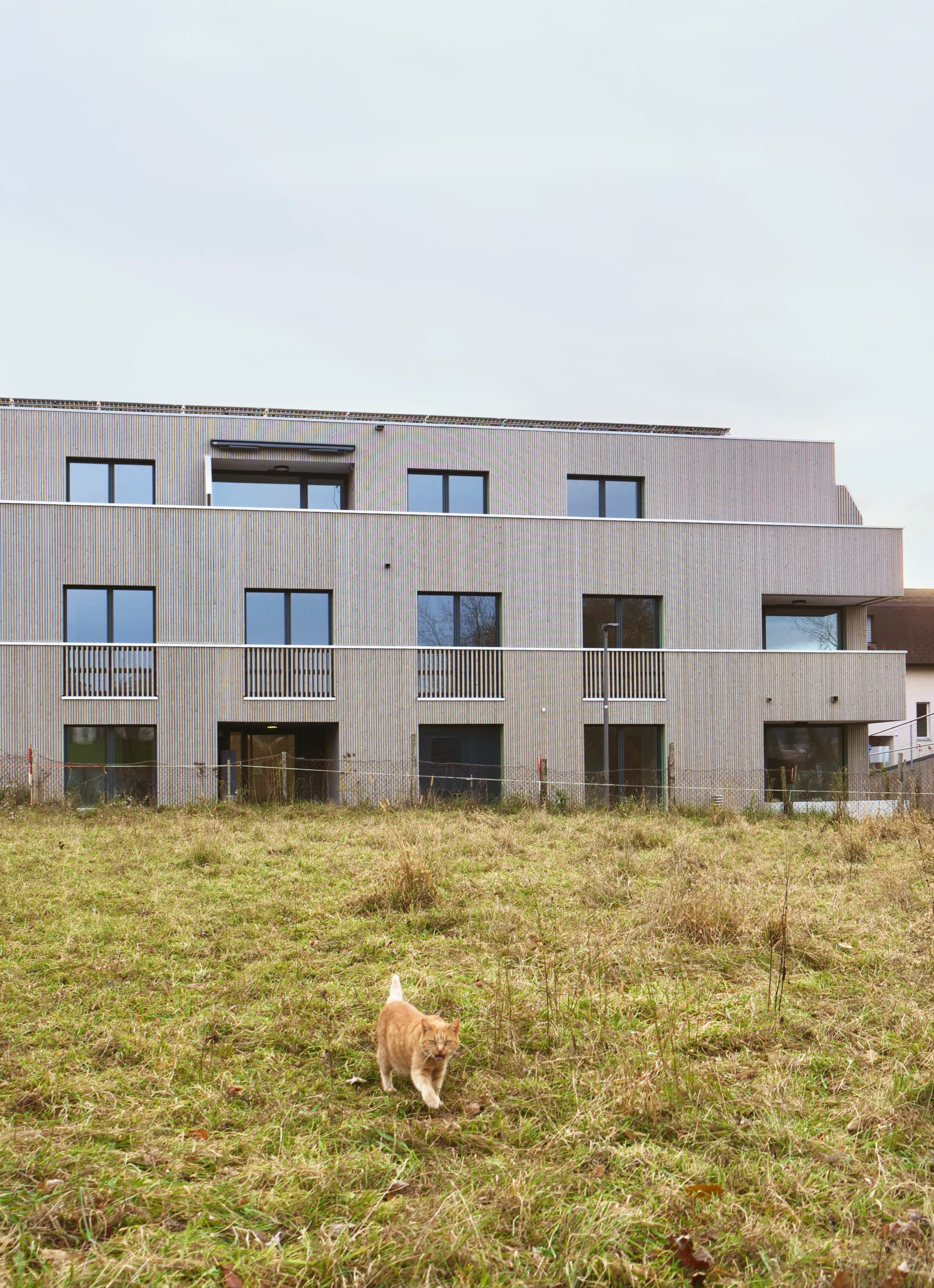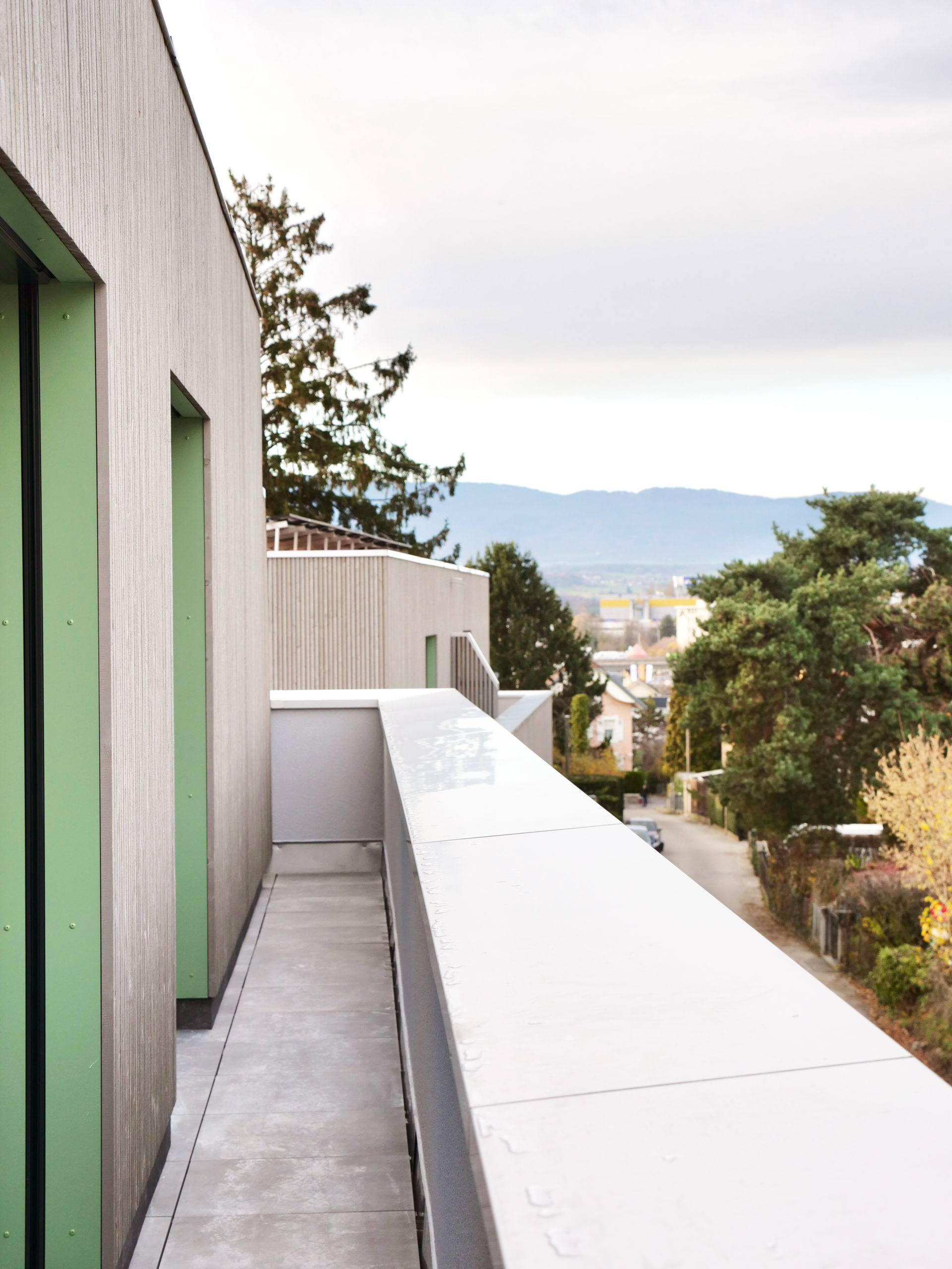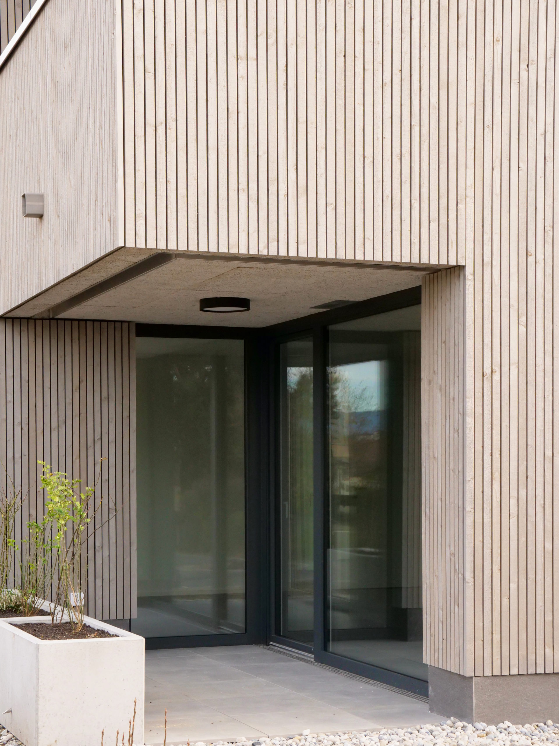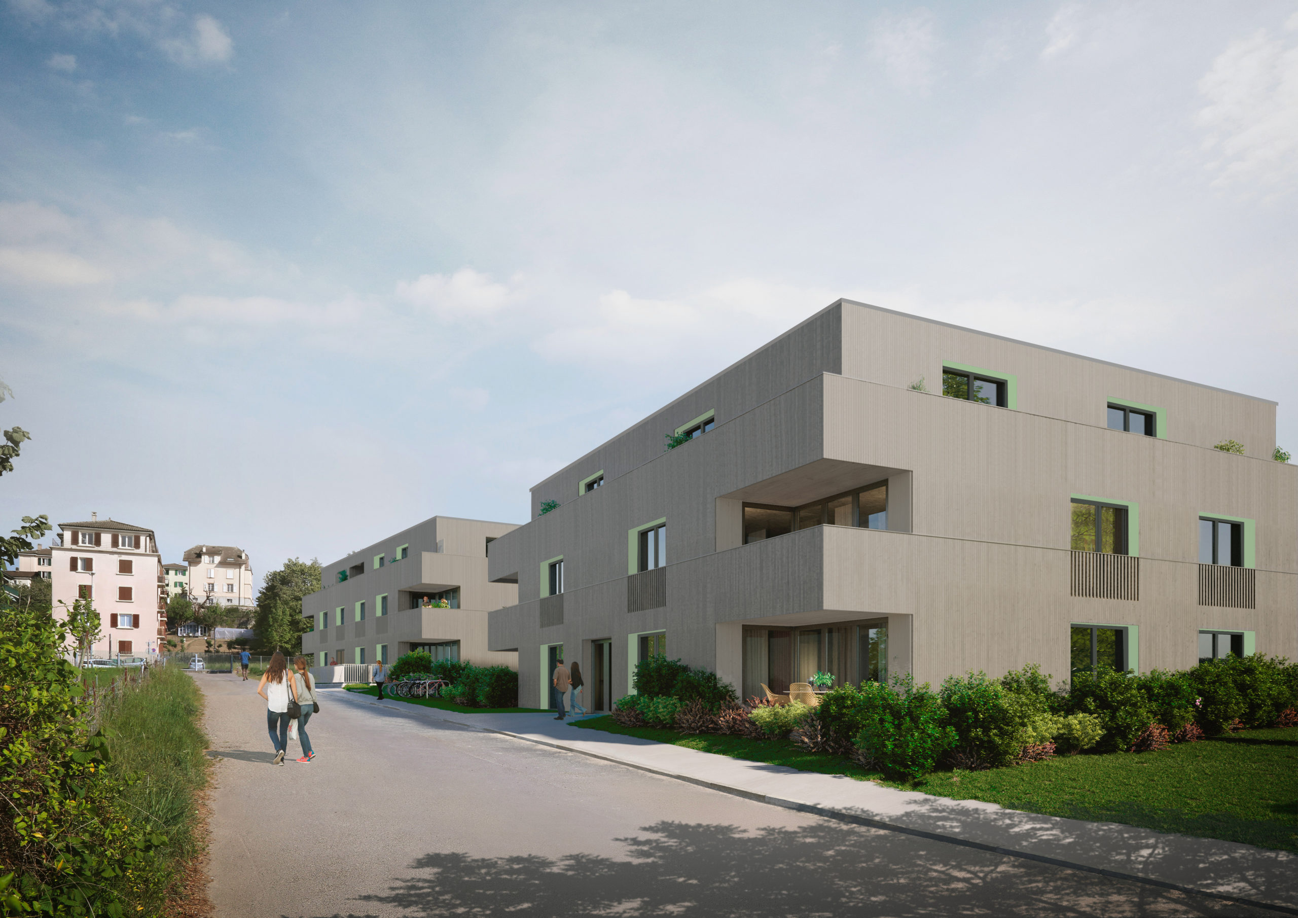 La parcelle se situe dans la partie sud de la commune de Crissier, en bordure d’un quartier de logements de densité moyenne, marquant une limite entre la zone industrielle et commerciale et les quartiers d’habitation de la commune. Le programme s’articule en deux volumes distincts, de taille différente. Cette distribution permet de respecter l’échelle domestique des alentours et de mettre en valeur le grand bouleau existant. La légère rotation de chacun des deux volumes par rapport à la limite de la parcelle amène une dynamique urbaine.