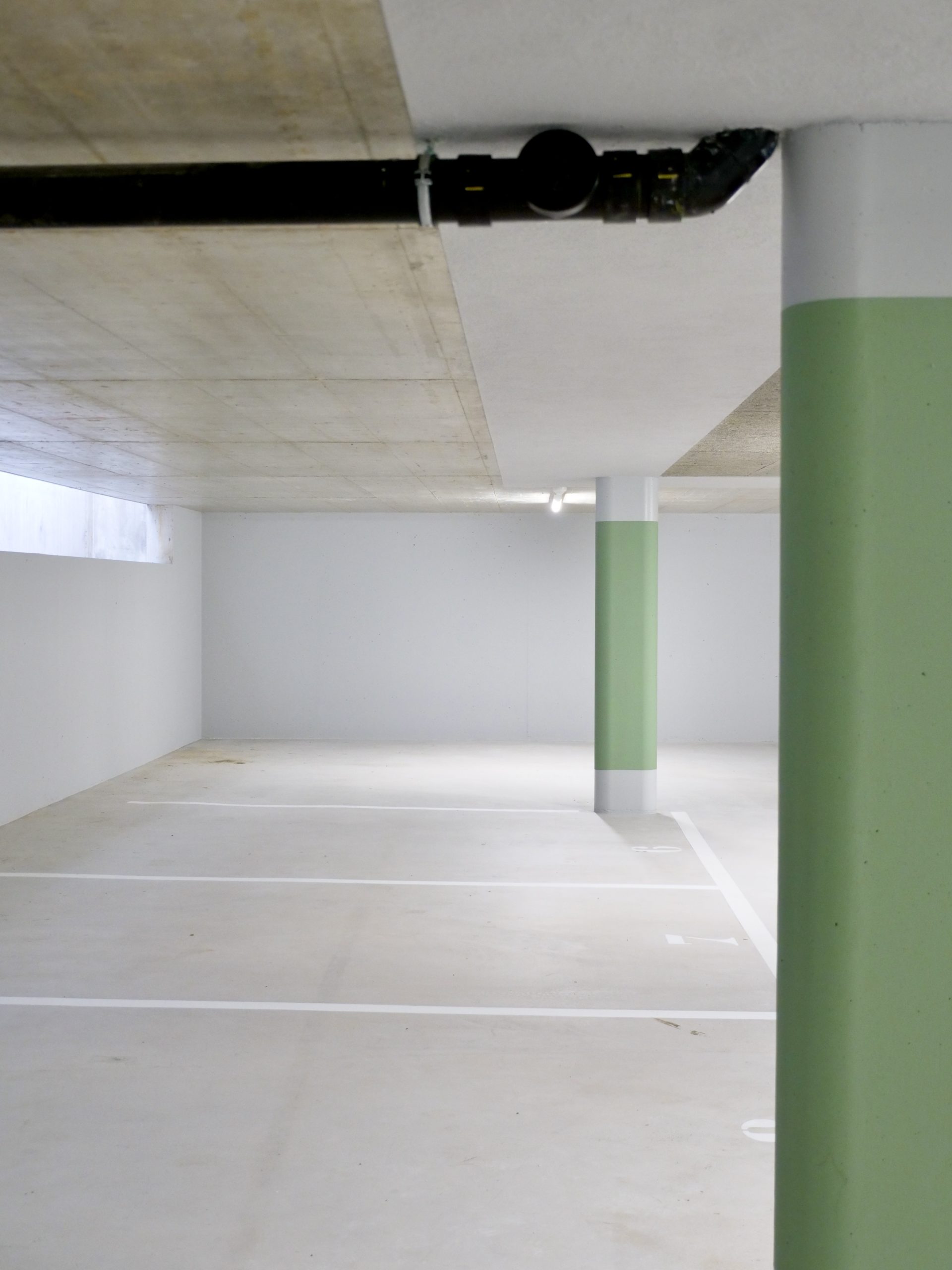 Le projet est divisé en deux volumes : respectivement au Nord-Ouest le bâtiment A, et au Sud-Est le bâtiment B. Ils sont organisés selon le même principe : la cage d’escalier centrale dessert deux niveaux similaires, puis deux niveaux plus compacts, profitant des terrasses. Elle est construite en béton armé, ce qui permet de répondre aux exigences de protection incendie et de participer structurellement au contreventement de l’ensemble de l’édifice.